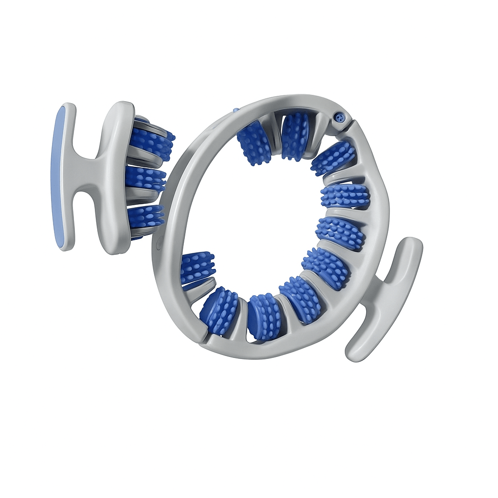 O Drena Roller estimula suavemente o tecido, liberando líquidos retidos e aliviando a pressão acumulada. Seu design ajustável permite alcançar pernas, braços, quadris e até mãos, garantindo resultados eficazes sem dor ou esforço.